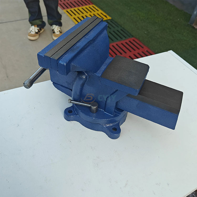 Операцијата наКлупа менгеме со наковалнае едноставен и удобен, а вилиците обично може да се поместуваат нагоре и надолу, налево и надесно и се стегаат со ротирање на рачката или прилагодување на механизмот.