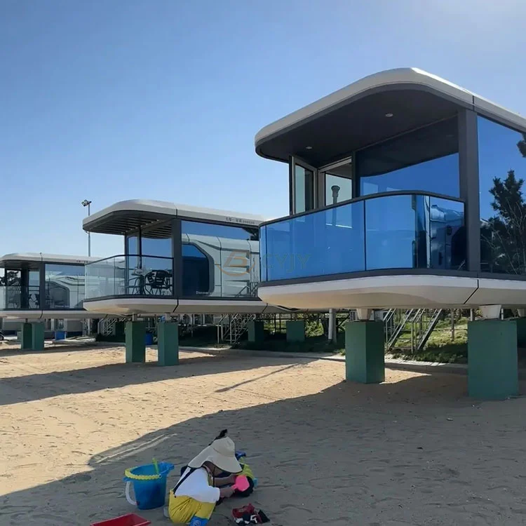 Дизајнот на модуларна куќа за капсула за живеење комбинира футуристички и практични карактеристики, со мазни линии и форма слична на вселенска капсула, комбинирајќи чувство на технологија со удобност во живот. Главната структура на модуларната куќа за капсула за живеење е изработена од галванизирана челична плоча или 304 не'рѓосувачки челик, со IP66 водоотпорен, отпорен на тајфун од 12 нивоа, земјотрес на 9 нивоа и капацитет на оптоварување на снег од 1,66КН/㎡ и може да се прилагоди на екстремни клими. Со модуларен дизајн, еколошки материјали и интелигентна технологија како основна, модуларна куќа за капсула за живеење обезбедува ефикасни, флексибилни и одржливи решенија за итни случаи, туризам, канцелариски и животни сценарија и е репрезентативен производ на компактен простор за живеење во иднина.