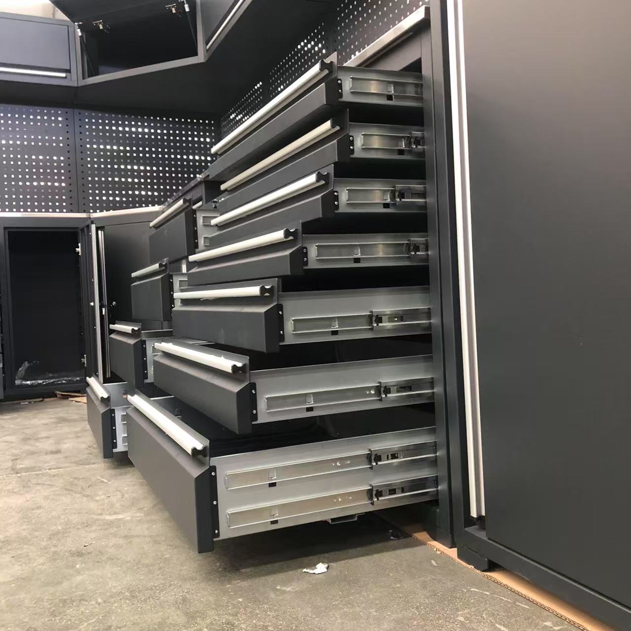 Мултифункционалната работна површина со тешки алатки е изработена од ладно валана челична плоча со анти-каша на површината, што е отпорен на корозија и отпорна на абење и може да се прилагоди на високата влажност или индустриските околини. Мултифункционалната работна површина со тешки алатки обезбедува повеќеслоен класифициран простор за складирање, поддржува управување со поделба на алатки, додатоци и мала опрема и ја подобрува ефикасноста на работата. Мултифункционалните работни мрежи со тешка алатка ги опфаќаат фиоките се опремени со тивки шини со целосна екстензија, кои поддржуваат непречено отворање и затворање кога се целосно натоварени, подобрувајќи го искуството во работењето.