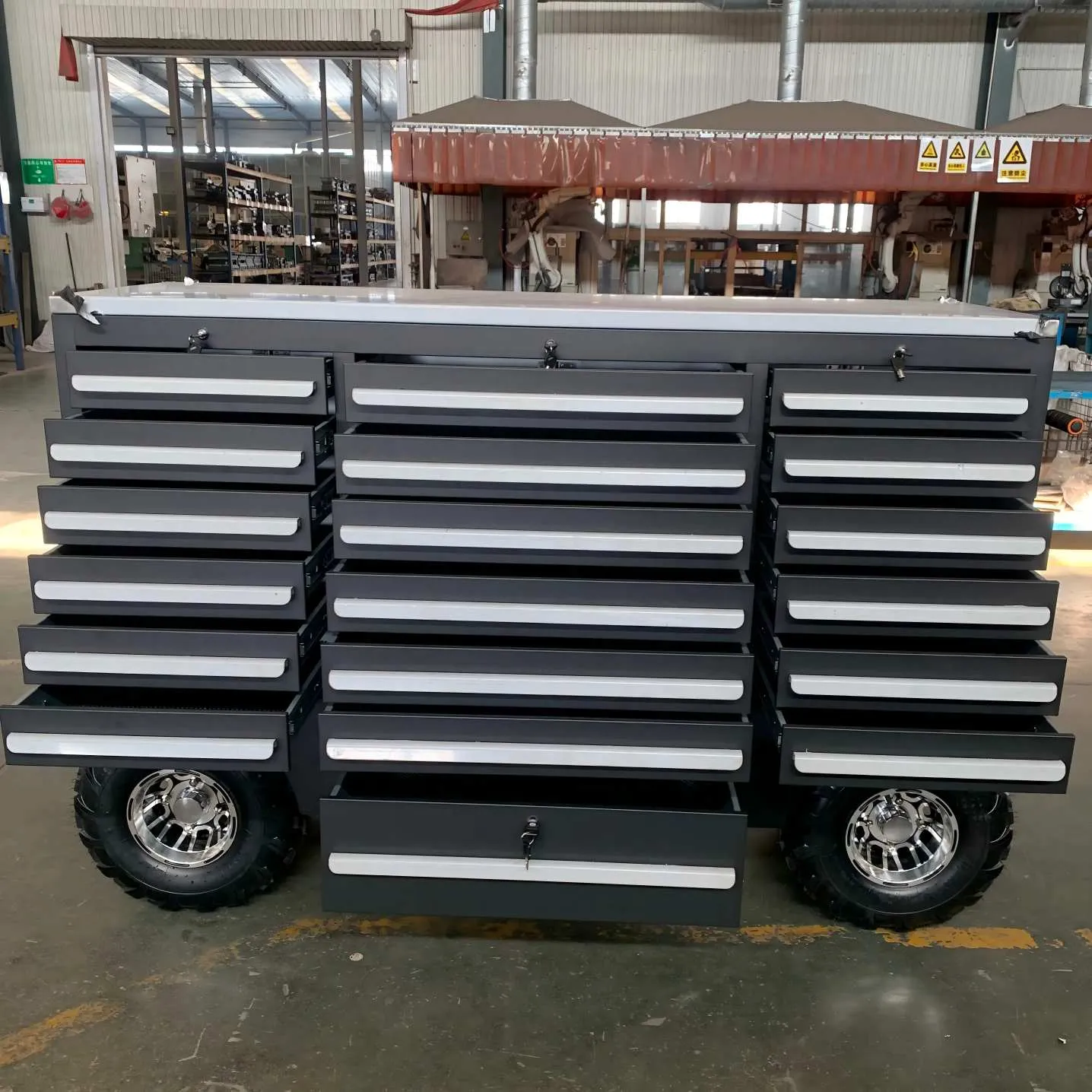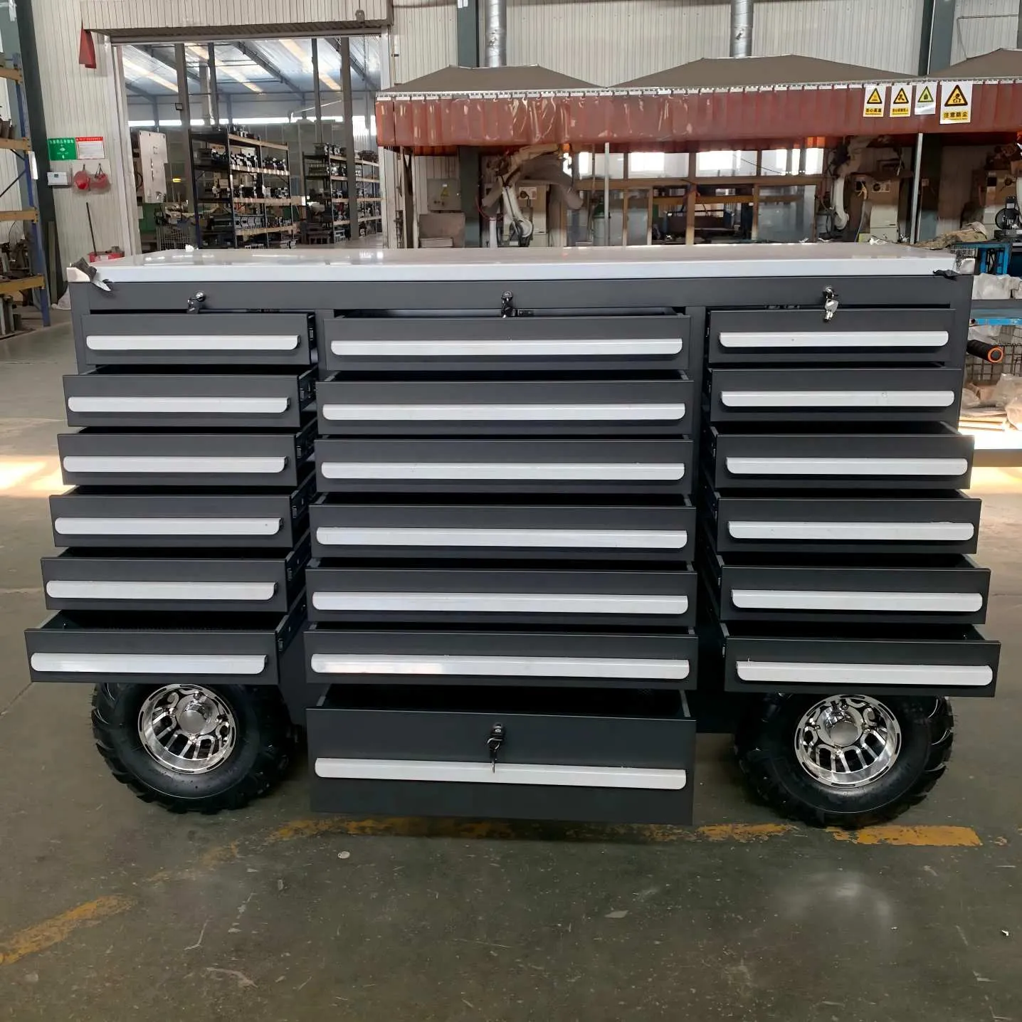 Силна функција за складирање: Голем број фиоки со различни големини, во комбинација со прилагодливи делители на фиоки, овозможуваат рафинирано класифицирано складирање на алатки. Без разлика дали градите на гаражата OEM ролери се мали завртки и ореви или големи алатки за напојување, може да се најде соодветна положба за складирање.