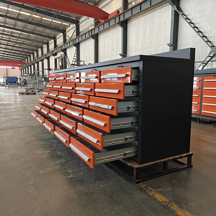 Портокаловата 30 работна маса на фиоки е изработена од челична плоча со ладно валани со анти-каша на површината, што е отпорна на корозија и отпорна на абење и може да се прилагоди на висока влажност или индустриски средини. Портокаловата 30 фиока за фиоки обезбедува повеќеслоен класифициран простор за складирање, поддржува управување со поделба на алатки, додатоци и мала опрема и ја подобрува ефикасноста на работата. Фиоките за работна површина од портокал 30 фиоки се опремени со тивки шини со целосна екстензија, кои поддржуваат непречено отворање и затворање кога се целосно натоварени, подобрувајќи го оперативното искуство.