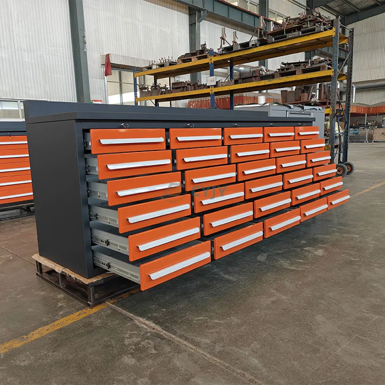 Workbench од портокал 30 фиоки е работна маса со високи перформанси дизајнирана за професионални техничари, механички инженери и околини за индустриско производство. Интегрира 30 независни фиоки, цврста структура на табелата и ергономски дизајн за да ги задоволи потребите на прецизно складирање на алатки, ефикасно работење и долгорочна издржливост. Модуларниот дизајн на Workbench од портокал 30 фиоки поддржува флексибилна конфигурација и е погодна за повеќе сценарија како што се автомобилско одржување, механичко производство и електронско склопување.