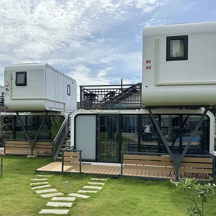 Префабрикуваните куќи на капсули се изработени од висококвалитетни материјали и се еколошки! Префабрикуваните куќи на капсули користат стандардизирани модуларни единици, кои можат флексибилно да се комбинираат според потребите, да поддржуваат еднослојно или повеќеслојно редење и да се прилагодат на различни барања за простор. Префабрикуваната куќа со капсули обезбедува најразлични изгледи, внатрешен распоред и функционални опции за конфигурација за да се задоволат персонализираните потреби.